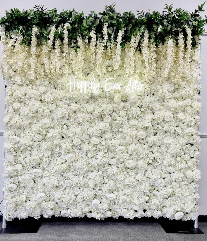 Why not add one of our light up NEON Signs to accompany the flower wall with a caption that has meaning.