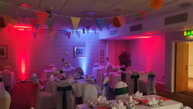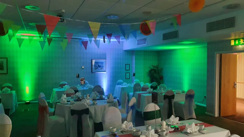 Venue up-lighting sometimes referred to as mood lighting is perfect for illuminating a dull or dark room helping to bring out features such as Pillars, Fireplaces, Windows, Backdrops, Flower Walls and even Cake tables, also great for adding a touch of colour and elegance to the walls around a venue, with multiple colour options these lights can be set to a single colour or an array of rainbow colours and a variety of settings allow for them to be dimly lit for that subtle look or full brightness bringing any venue alive with colour.